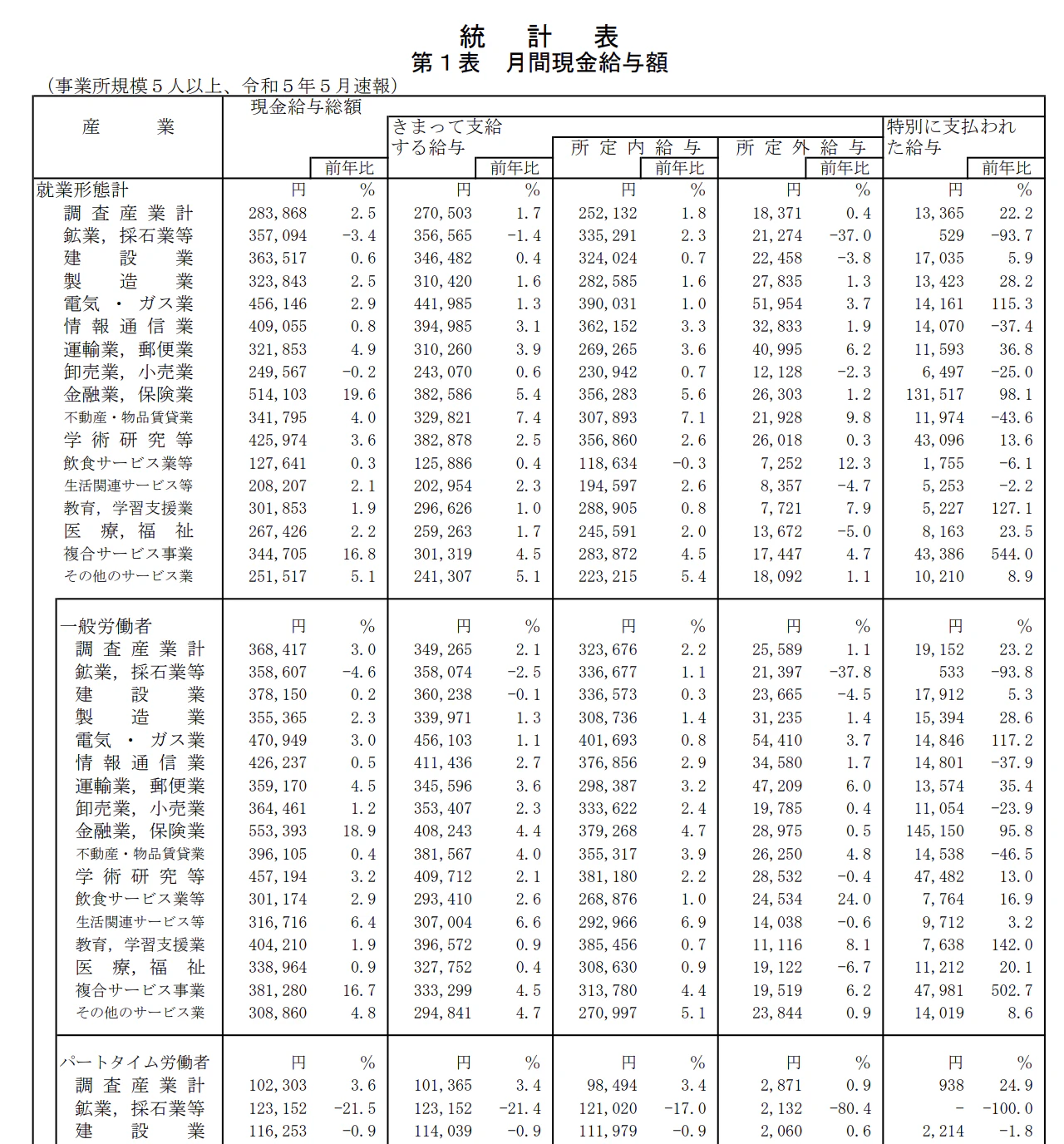 毎月勤労統計調査 令和5年5月分結果速報【7月7日 厚生労働省発表】