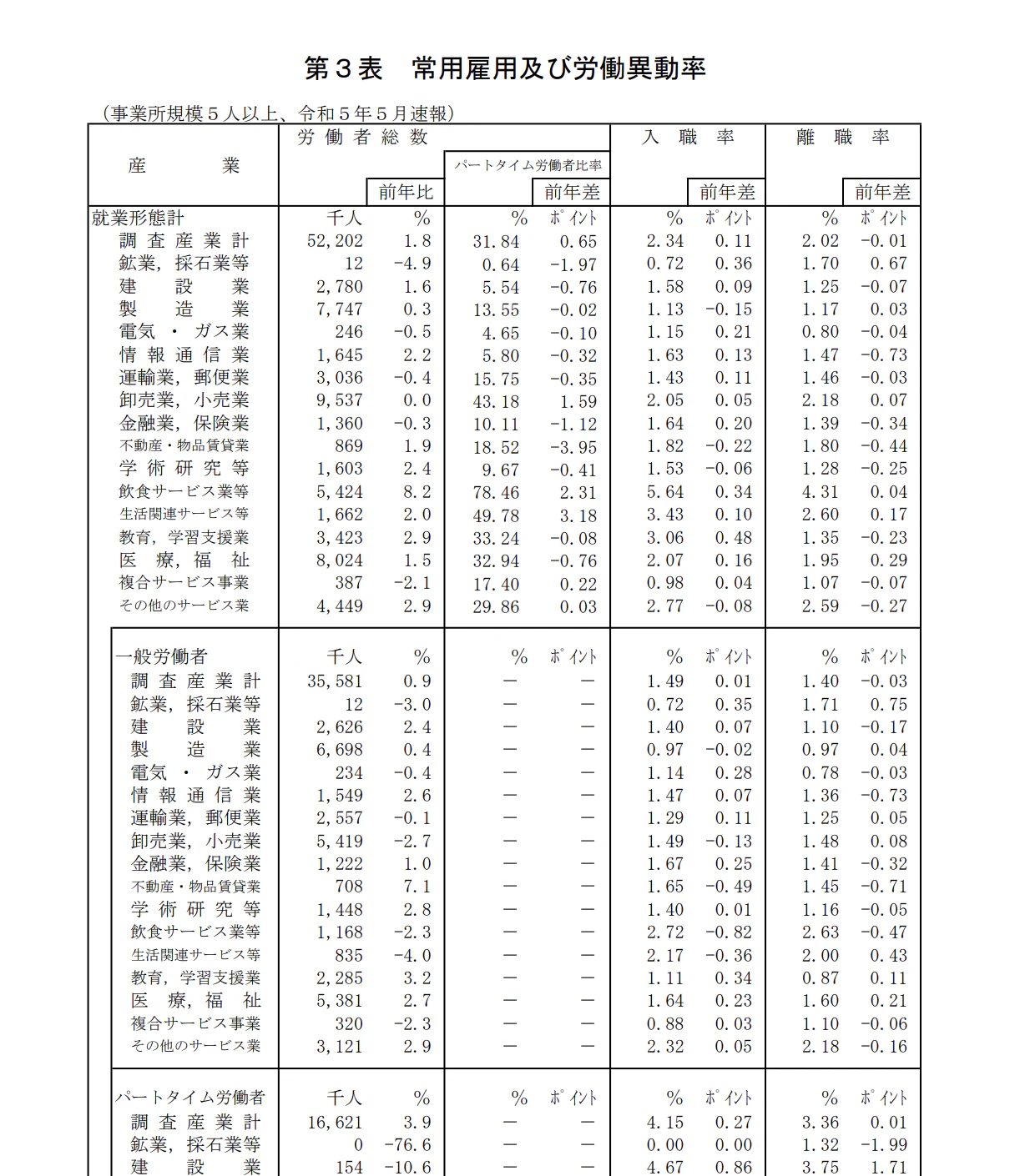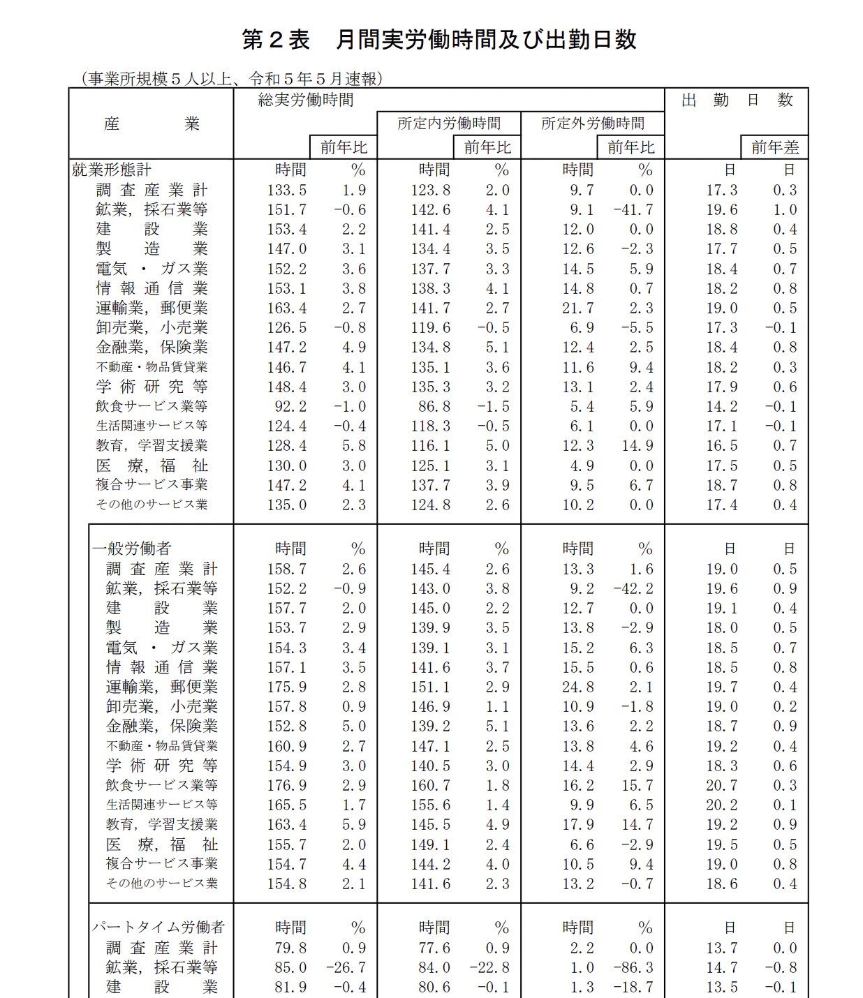 【2023年7月1日〜7月7日】 毎月勤労統計調査 〜 雇用・給与・労働時間について〜