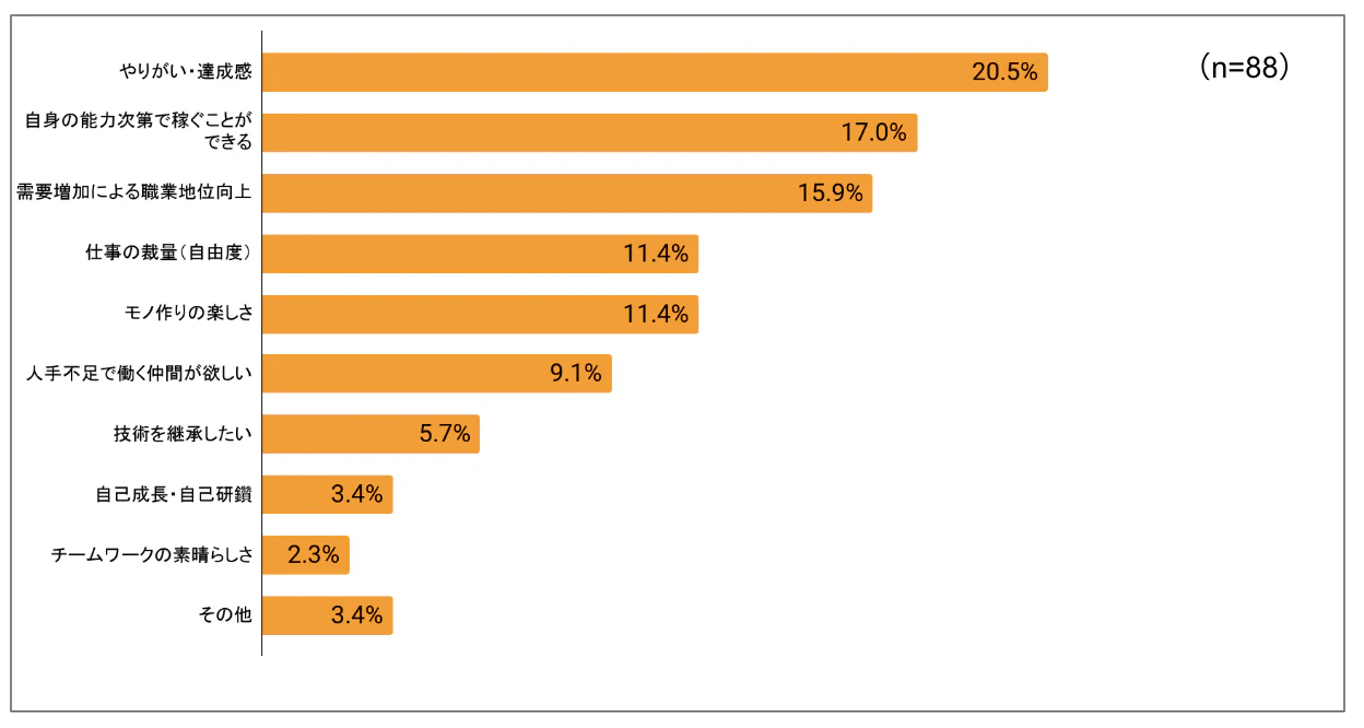 自分自身の技術や頑張りで稼ぐことができるといった声が見られました。図10.建設業の魅力