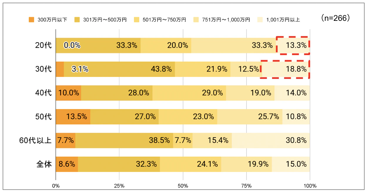 収入についても調査を実施し、以下の結果となりました。
