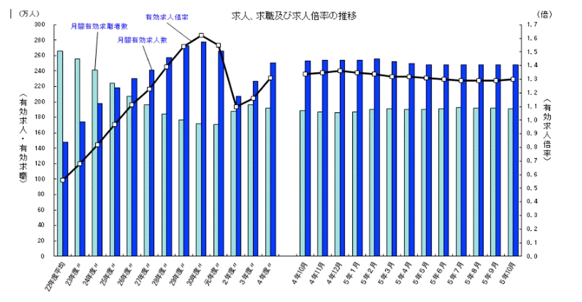 一般職業紹介状況(令和5年10月分)について【12月1日 厚生労働省発表】