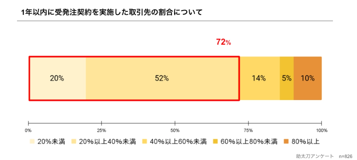 また、過去取引先のうち1年以内に受発注契約を実施した取引先は40%未満である、と回答した事業者が7割を占めました。(図14参照)