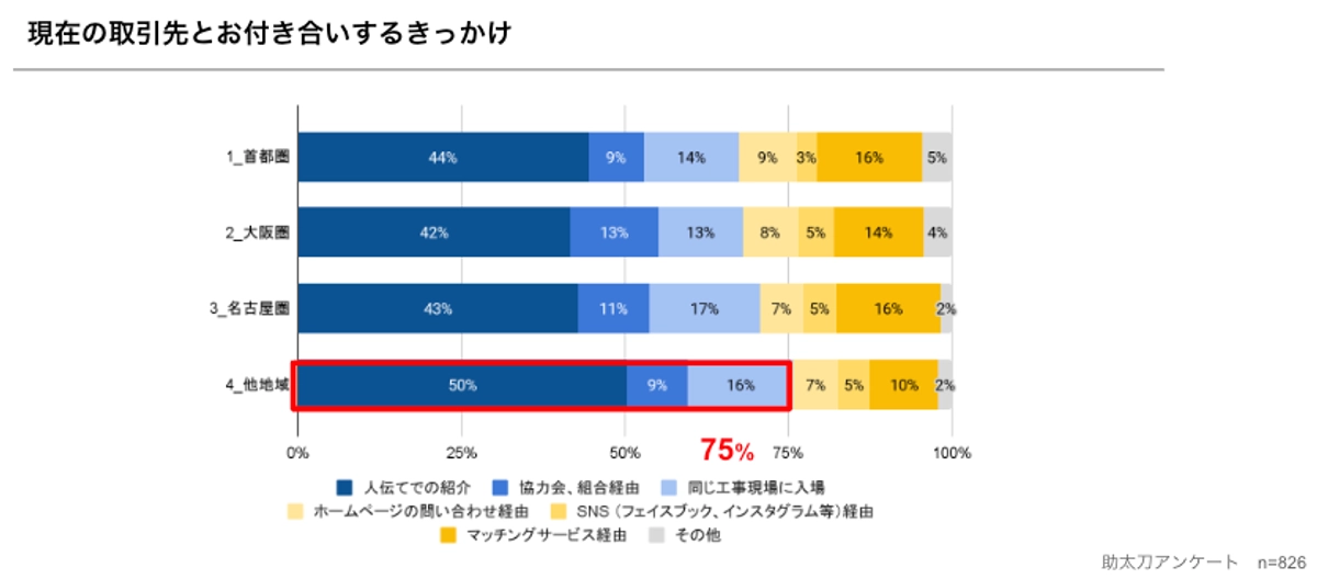 地域別では、三大都市圏とその他地域で比較すると、地方での既存の関係性からの紹介の回答比率が75%と高いことが分かります。(図16参照)
