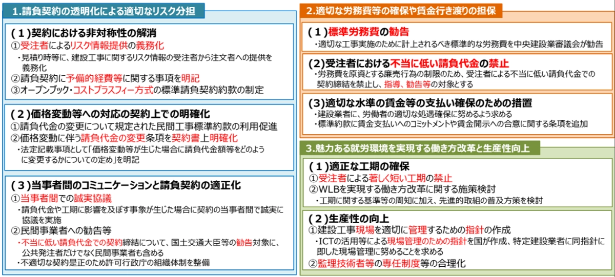 - 請負契約の透明化による適切なリスク分担