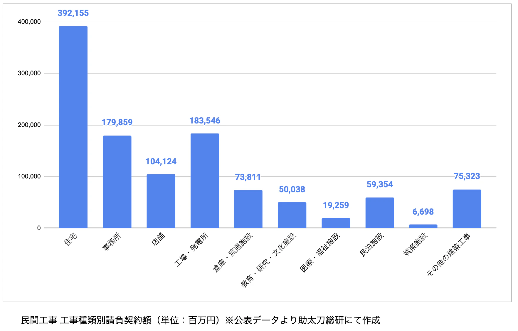 また、民間工事のうち、受注高トップ3は以下となりました。