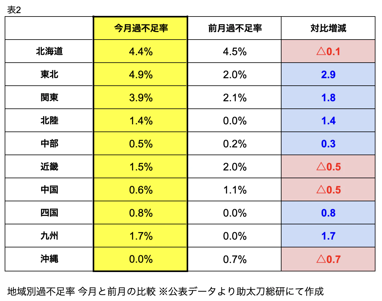 <地域別の過不足率>