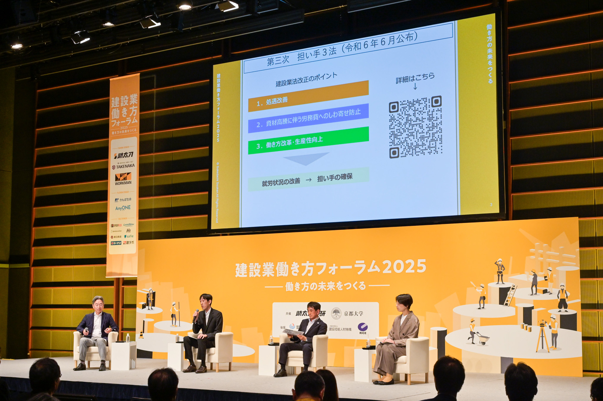 「建設業働き方フォーラム2025」は、国土交通省と一般社団法人建設技能人材機構、一般財団法人建設経済研究所による後援を受け、京都大学と助太刀総研が共催で2025年6月に東京国際フォーラムにて開催しました。
