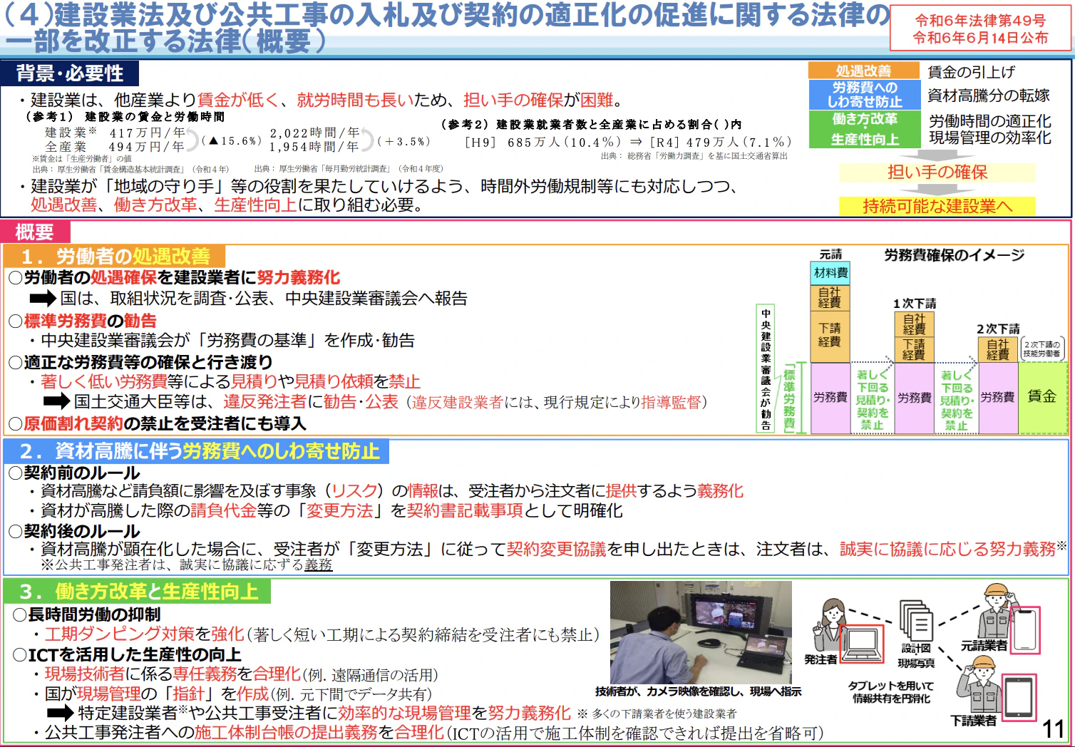 ・建設業法・入契法改正(令和6年法律第49号)について|国土交通省
