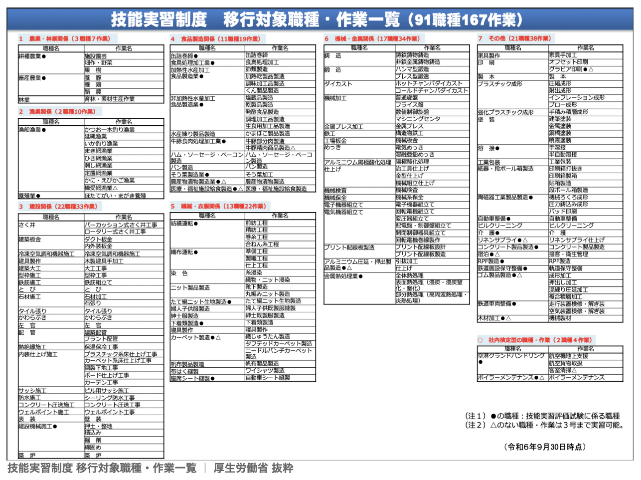 ・技能実習制度 移行対象職種・作業一覧|厚生労働省