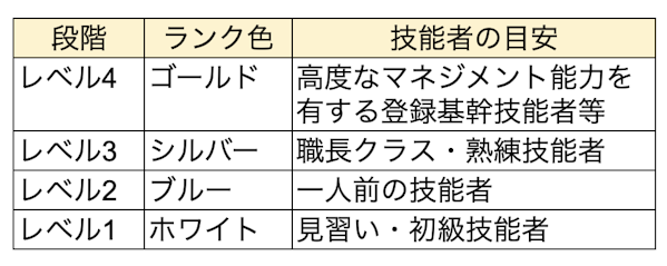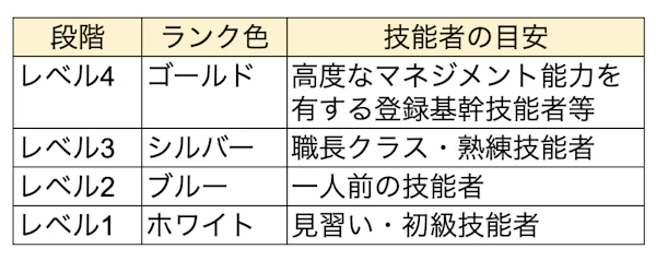 標準労務費の最大の特徴は、建設キャリアアップシステム(CCUS)の能力評価基準と連動している点にあります。 具体的には、技能者の能力を以下の4段階に区分し、それぞれのレベルに対応した標準的な労務費が設定されます。